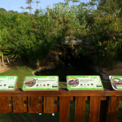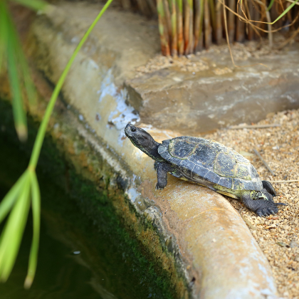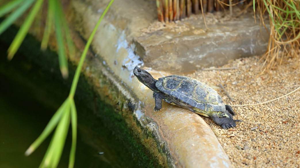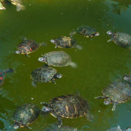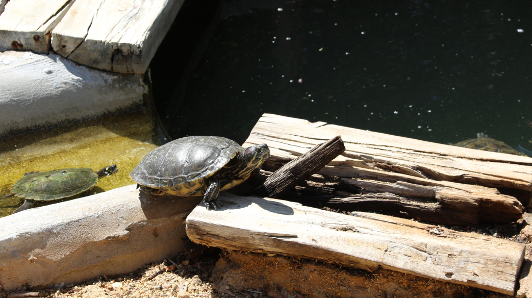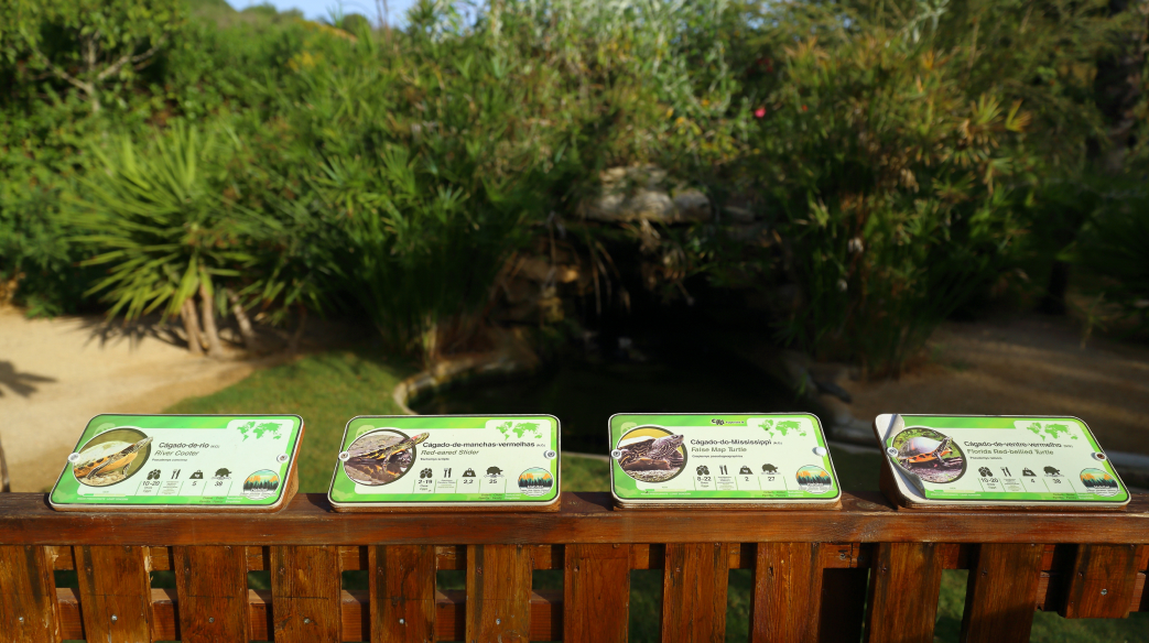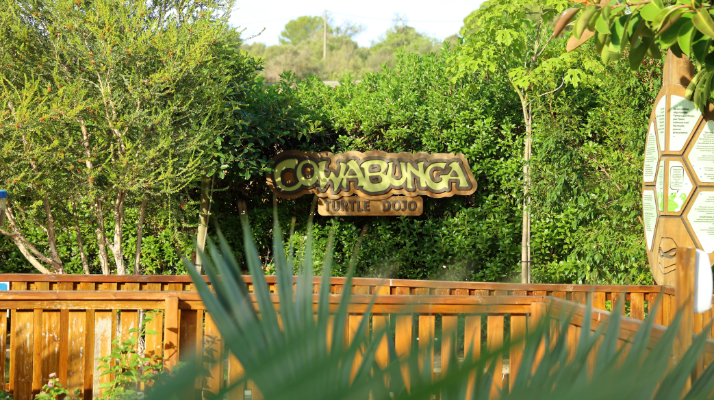 Os residentes deste Turtle Dojo são várias dezenas de cágados-de-manchas-vermelhas, uma espécie exótica que se distingue pela pele verde com riscas amarelas e uma mancha vermelha ou amarela que começa na zona do olho ao pescoço. Não é uma espécie autóctone e começou a multiplicar-se, tornando-se uma espécie invasora e pondo em risco o equilíbrio das espécies locais. O Turtle Dojo serve-lhes de refúgio.